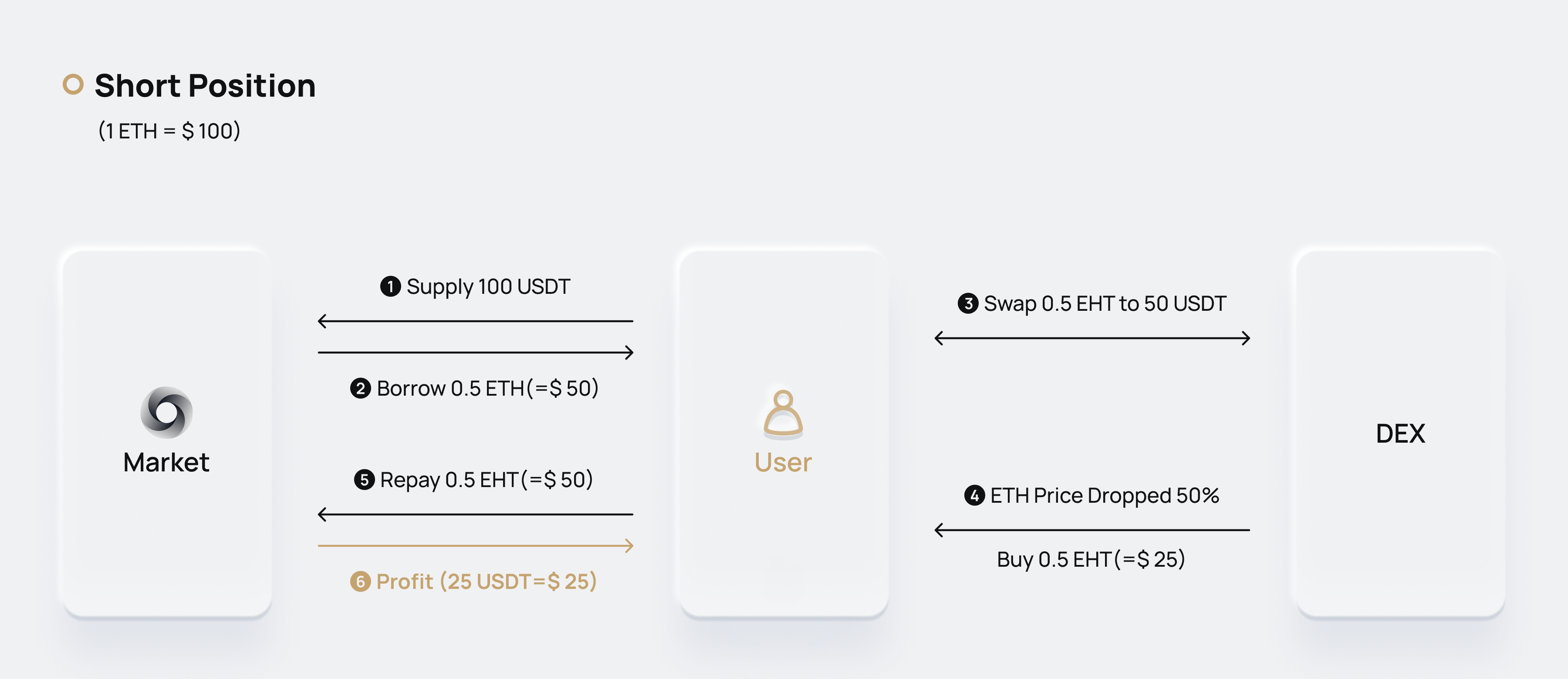 **ex) Deposit asset A → Receive a loan for asset B that is likely to decline and sell → Re-deposit as collateral → Repeat**